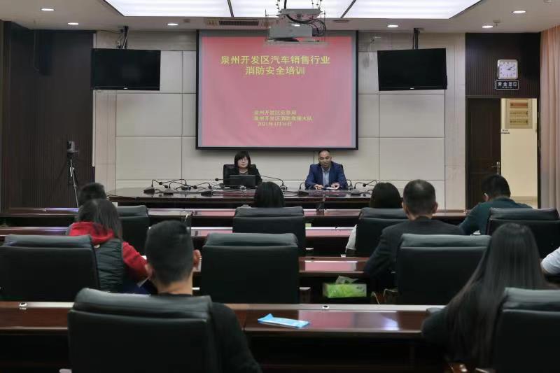 4月16日下午,泉州开发区应急局联合消防大队举办汽车销售行业消防安全培训会。培训会针对汽车销售行业的特点,详细讲解了如何做好日常防火工作、如何查找和整改消防安全隐患、如何处置初起火灾、火灾现场组织疏散逃生以及消防器材维护保养等相关消防安全常识。会议要求,全区各汽车销售企业务必高度重视,抓紧、抓实、抓细消防安全工作,坚决遏制火灾事故发生。通过此次消防安全培训,进一步强化了汽车销售企业的主体责任意识,提升了应对消防安全的主动性和自觉性。