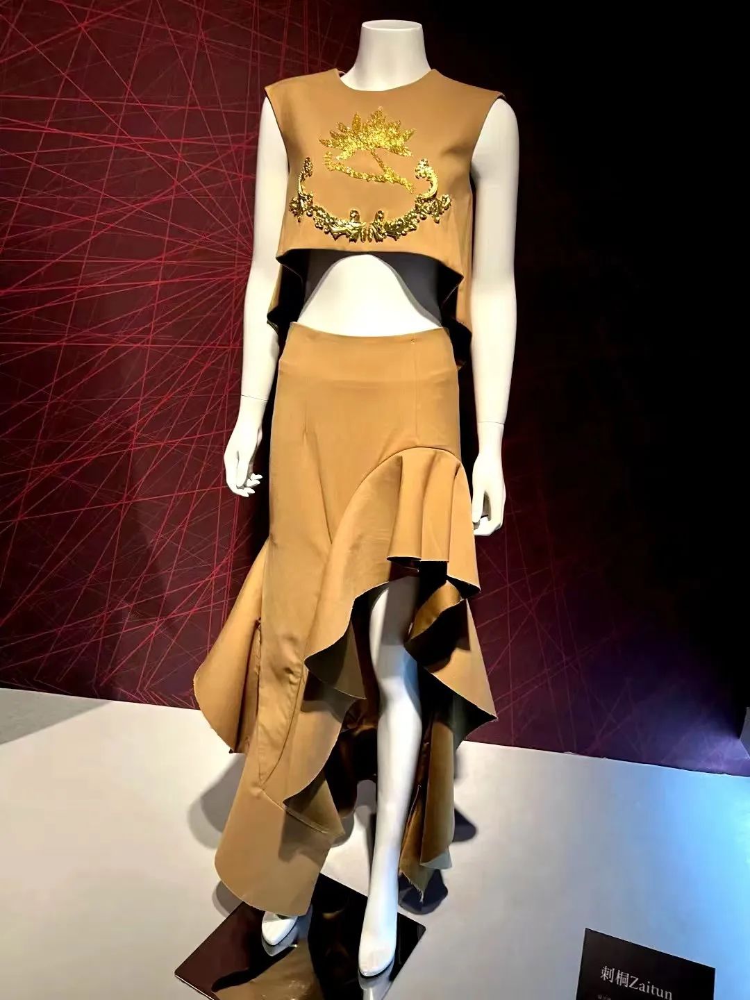 设计挖掘金苍绣所蕴含的情思,以重构艺术生命,运用独特的时尚艺术手法将刺桐花图案融合于服装当中,展现了传统元素与现代艺术的重生魅力。