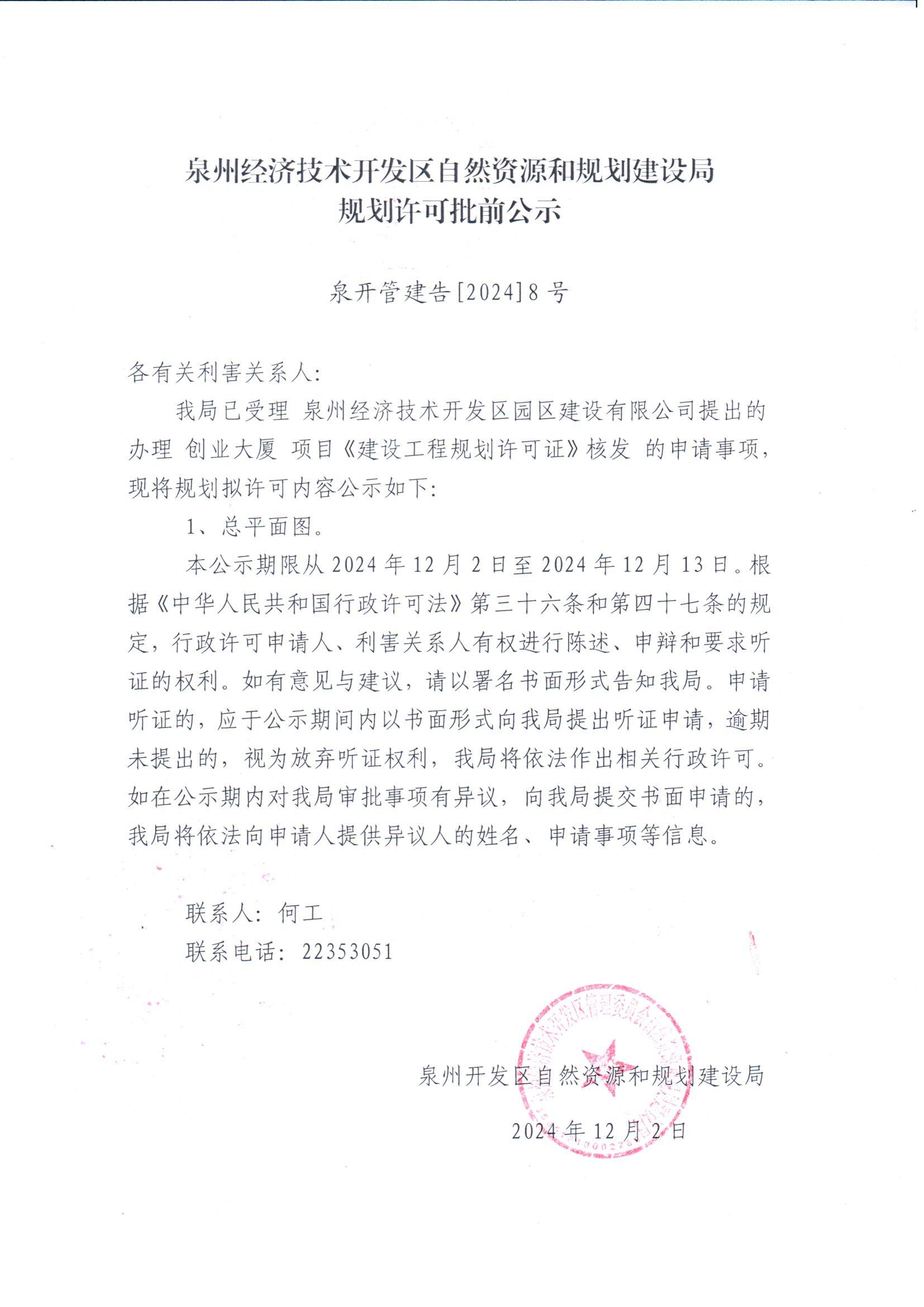 自然资源和规划建设局规划许可批前公示(创业大厦项目)